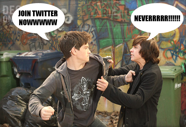 If he didn’t want one he wouldn’t have joined no matter what they say and if he was forced then he just doesn’t go on. It’s not a big deal that a ‘celebrity’ with a lot of fan girls makes a twitter. He’s not the only one. If it gets to overwhelming he just deletes it or doesn’t go on. I’m sure everyone else is overwhelemd with comments too. They just don’t read and/or answer MOST of them. It’s better to be harassed with fans on twitter then everywhere you go anyway. Maybe he even enjoys it. For everyone to feel bad for him because he made a twitter is sad.