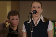 PLOT C SUMMARY: Clare meets KC, the new gifted student who she assumes isn’t smart. He questions why she wears a private school uniform and she says it’s because she doesn’t care what others think about her. During lunch KC challenges her to show a talent in front of the caf audience. She sings a hymn and is booed off the stage. Embarrassed, she decides to eat lunch in the media immersion lab. Clare says she hangs out with the smart kids because she’s not as popular or as pretty as her sister Darcy, but KC tells her that she’s more than just smart.
