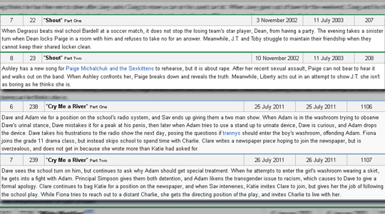 So now I think of Degrassi in two steps: SEASONS that contain STORYLINES.