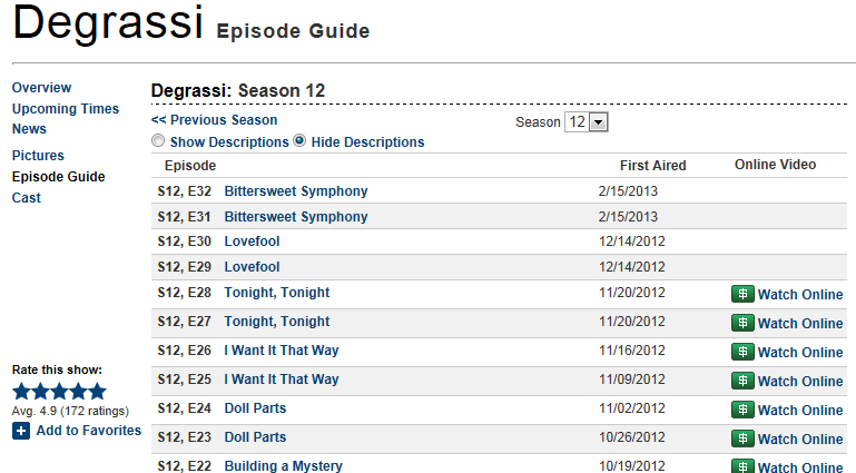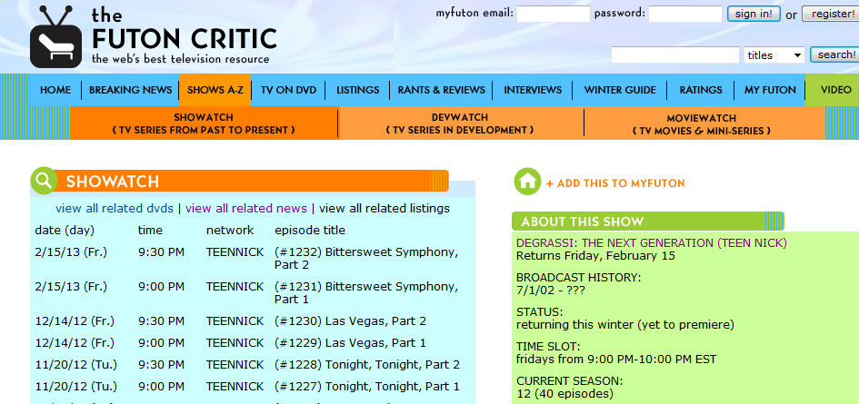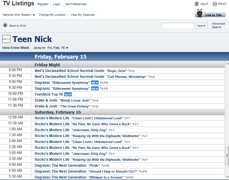 TV Guide has unknown Degrassi episodes listed in those timeslots, but they also have Degrassi listed as running marathon style from 6pm on. That can’t be correct since all of the other listings sites have TeenNick’s Top 10 definitely airing at 10pm on 2/8 and 2/15. It’s all weird because if TeenNick were doing a one-hour premiere, you’d think they would’ve mentioned it in one of the four 12C promos they’ve put out over the past three weeks. Then again, they’ve also been known to initially post incorrect listing info only to suddenly change it. Hopefully someone will clarify this soon.
