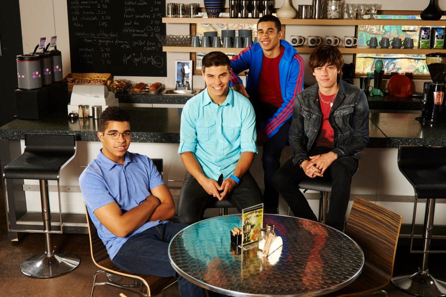 Pictured: Connor Deslauriers (A.J. Saudin), Drew Torres (Luke Bilyk), Mike Dallas (Demetrius Joyette), and Eli Goldsworthy (Munro Chambers) in DEGRASSI Gallery Photos on TeenNick. Photo: Steve Wilkie/Epitome Pictures, Inc. ©2013 Epitome Pictures. All Rights Reserved