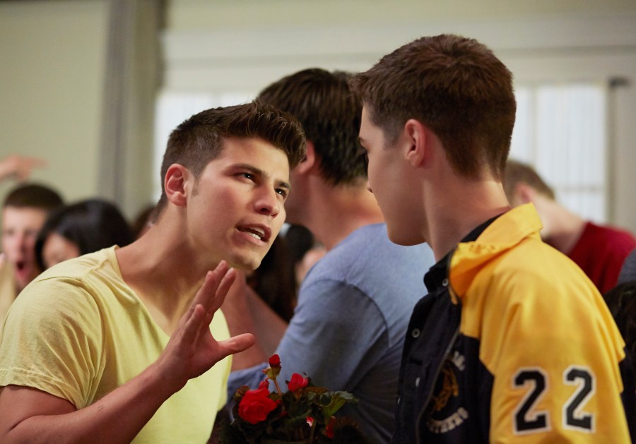 “1322_Basket Case”–Pictured: Drew Torres (Luke Bilyk) and and Miles Hollingsworth (Eric Osbourne) in DEGRASSI Gallery Photos on TeenNick. Photo: Shane Mahood/Epitome Pictures, Inc. ©2014 Epitome Pictures. All Rights Reserved