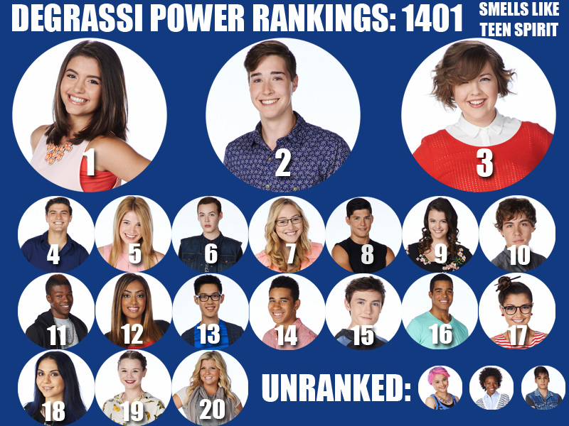 Not every character is going to move every week and that in itself isn’t a bad thing…it becomes a concern for any character that doesn’t seem to move at all over the course of many weeks, especially for the ones near the bottom (because Jenna could easily sit there in dead last if Degrassi chooses to have her just stand around looking pretty for her final season).