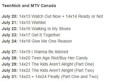 UPDATED 7/4/15: So it looks like TeenNick and MTV Canada will air 14B on the same schedule after all.