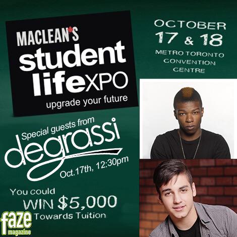 All is quiet on the set of Degrassi, but it’s a busy few days for several cast members who will be out and about. Here’s a look at where you can see/meet them over the weekend: