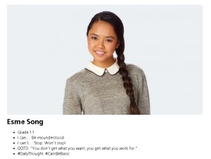 *Grace. She has an illness for which there is no cure. She knows this, but if people find out they’ll treat her differently. There are various routes to take here and I’m only thinking down the road, but *if* Degrassi were to go down a path where we witness her declining health and inevitable death, this could be one of the rawest, most-heartbreaking storylines this show has ever told.