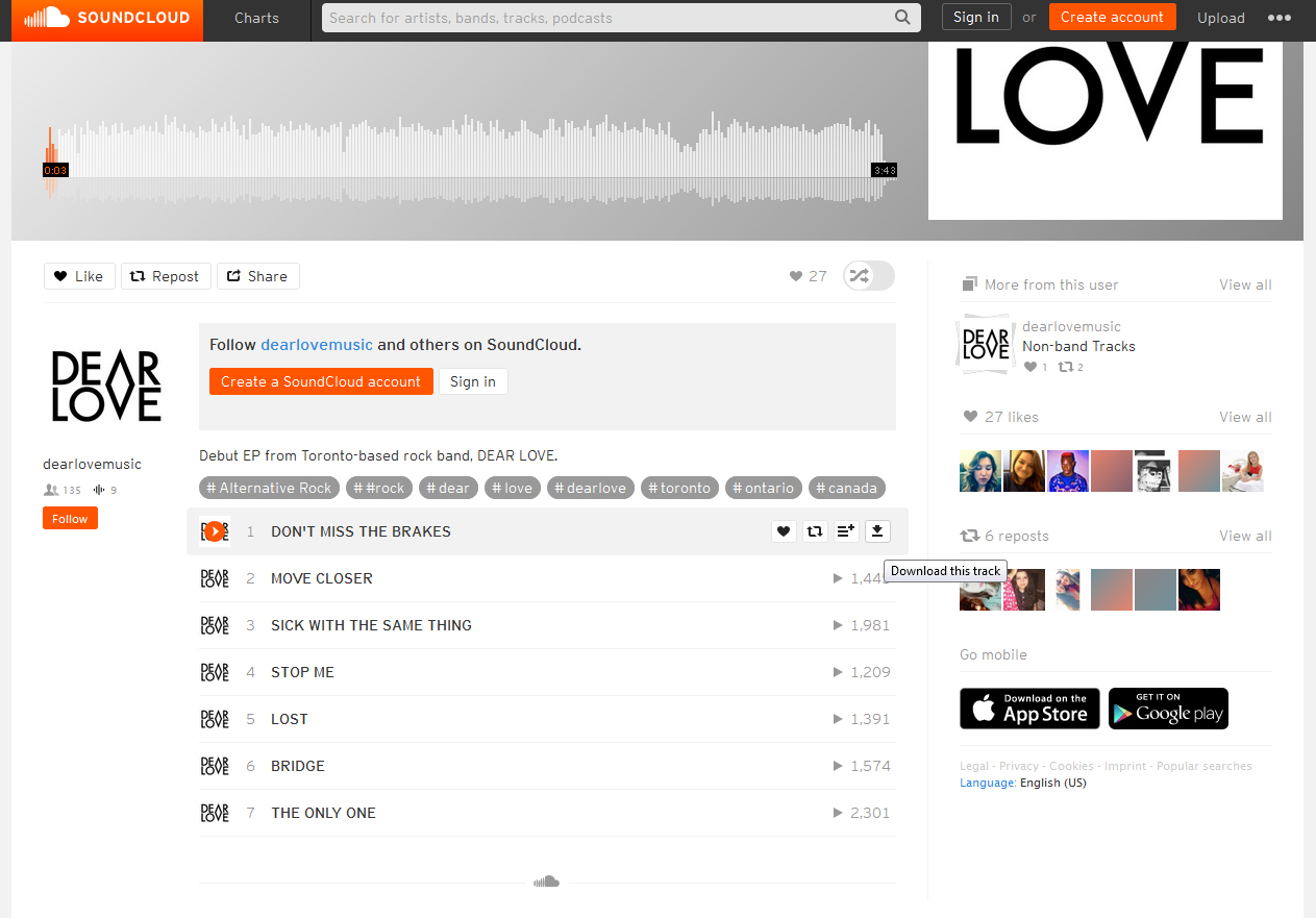 Dear Love’s EP is available for purchase on iTunes, but they’re now allowing you to download it for FREE.